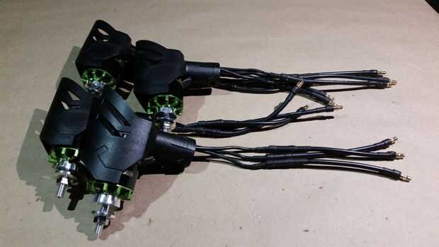 Algunos detalles antes de comenzar aunque. En primer lugar, como probablemente ya notado, cada motor tiene tres cables. Por tanto, tenemos un total de doce extensiones. En segundo lugar, los cables del motor son terminados con conectores de 3,5 mm bala. En tercer lugar, estos cables pueden llevar corrientes bastante importantes, para los motores que estoy usando en este Instructable hasta 12A. Por lo tanto, asegúrese de utilizar medidores de alambre lo suficientemente pesada, como 14 AWG.