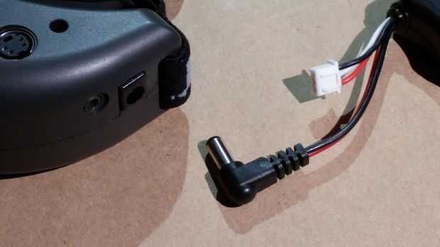 La batería se conecta a las gafas Fat Shark con un conector de barril. El conector hembra en las gafas se encuentra del lado derecho, junto a la banda elástica. Solo para que ustedes conocen, las gafas Teleporter V3 no tienen un poder desconectar tan pronto como se conecta la batería, se alimenta en las gafas. Por lo tanto, simplemente enchufe al conector de barril de la batería en el conector de acoplamiento de las gafas.