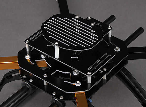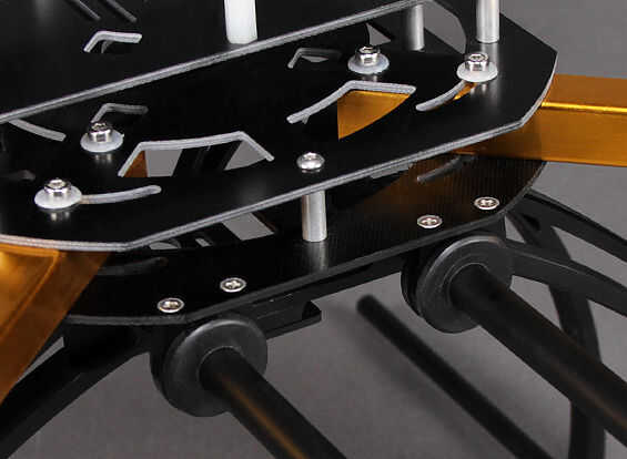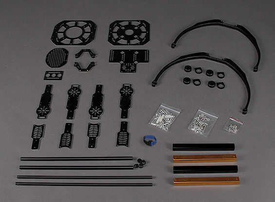 Es bastante fácil de construir el marco de HobbyKing X650F según los pasos indicados en las instrucciones suministradas, recomiendo para terminar los cuatro brazos primero, luego la placa central donde se apoyan los brazos. También te recomiendo usar una gota de pegamento de tornillo en cada tornillo, ya que los apoyos causan mucha vibración si no equilibrado, transferidos a través de los motores directamente a la placa central y cuatro brazos. Es importante si no quieres drone vuelo mediado de desmontar los tornillos de fijación...