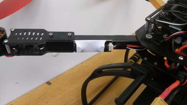 Descubrí, que es el mejor lugar para instalar el módulo de LED de estado en uno de los brazos traseros, en el interior. Así que cuando ejecutas el drone y está mirando hacia fuera, usted puede ver claramente los LEDs. Hay 2 LEDs en el módulo, el rojo indica el estado de armado/desarmado y el azul la cerradura GPS. Puedes leer más acerca de cada uno de los Estados mostrados en el sitio web de ArduCopter .