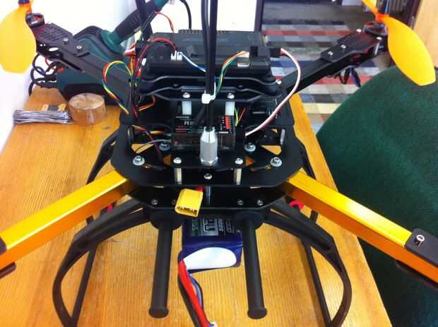 Esto es, casi todos los componentes están instalados, sólo agregamos el cardán en la cámara sin cepillo y después vas a través de algunos pasos de configuración básica en planificador de misión, usted está listo para ir, o volar para ser más exactos :)