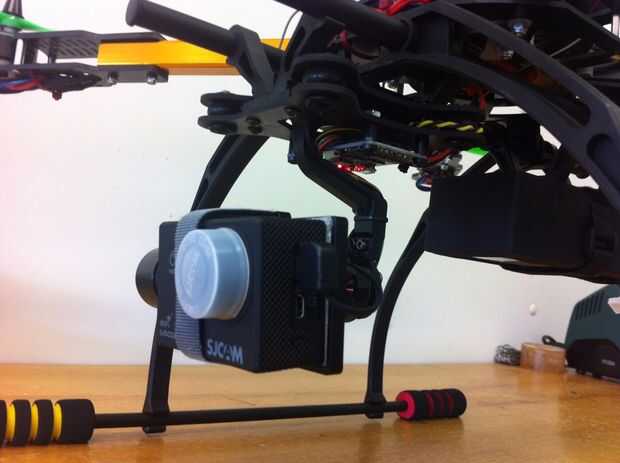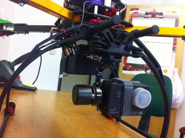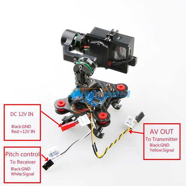 Es muy fácil de instalar el cardán, viene totalmente construido, usted apenas encájese a presión en los ganchos en los dos tubos de carbono de 10 mm en la parte inferior del marco, conecte un cable a su salida UBEC de 12V y un cable al puerto de A11 de la APM para el control de Pitch. Es necesario configurar el cardán en planificador de misión, las instrucciones están aquí. Recomiendo asignar un canal libre en la emisora a una girando la perilla, para control de paso fácil. APM no proporciona cualquier estabilización para el Stick, todo está en manos del controlador de cardán y sus giroscopios y acelerómetros. Y puedo decir hace un trabajo bastante bueno, el video es mantequilla suave. APM sin embargo puede cambiar el tono del cardán en el modo Auto y debes configurar un punto de interés como uno de los pasos de la misión automática. Mantendrá la cámara señaló este punto en todo momento, incluso rotar el zumbido para que siempre apunte su nariz a la meta. Característica muy bonita.