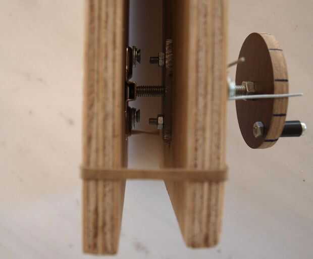 3. prepare el perno de conducción. Mediante un formulario de archivo su extremo en forma cónica. El disco de madera debe tener un diámetro mínimo de 60 mm marca 12 sectores en el disco.