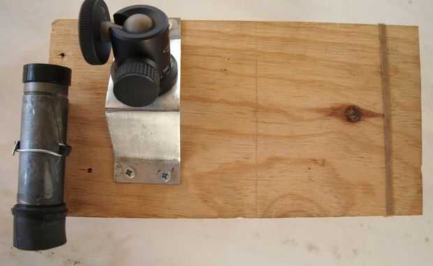 El buscador (o un tubo simple) debe estar alineado en paralelo al borde de la placa de madera.