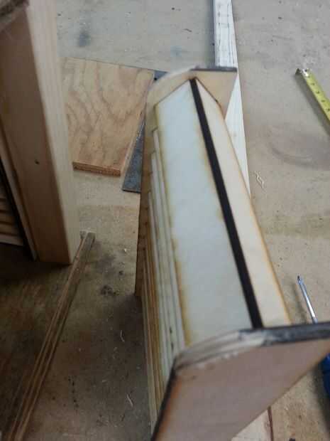 Una vez que tengas tres conjuntos de louvre instalados, recuerda que el último será su puerta de acceso. En la foto 2 vemos que lijar la parte superior para que un lado cuenta con esquinas redondeadas. Esto le permite inclinar esta Asamblea hacia fuera si no quiere que se deslice. Terminé solo taladrar un agujero de solo tornillo para sujetar el conjunto en su lugar. Esto es porque cualquier mantenimiento que realizar después de instala este recinto será mientras estoy parado en una escalera de 30' en el aire.