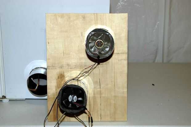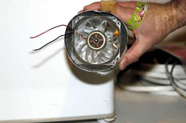 Ahora Conecte el conducto con el ventilador, en el interior de la cubierta del respiradero. Ahora tenemos dos conductos con fans conectados a ambos orificios.