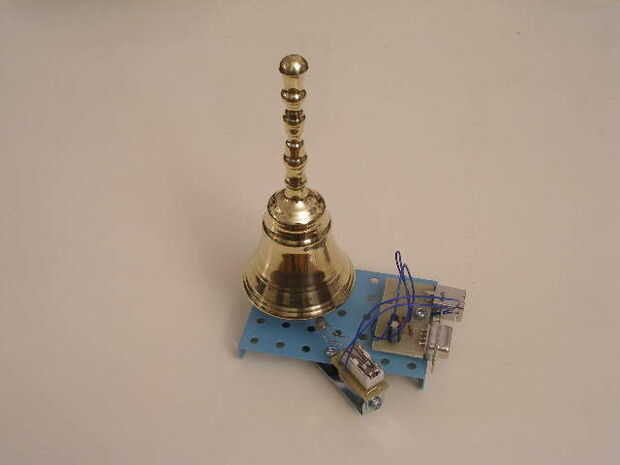 Luego interconectar la campana al puerto serial de la PC y había construido este llamativo reloj de campana.