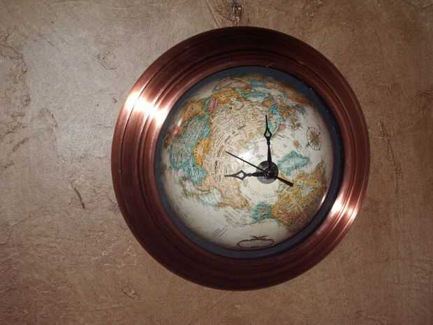 Lo que hice fue usar el bisel del termómetro como un marco, inserte la mitad del mundo en el marco y lo hizo en un reloj. También descubrí un buen uso de la otra mitad del globo, que va entrar en el último paso.