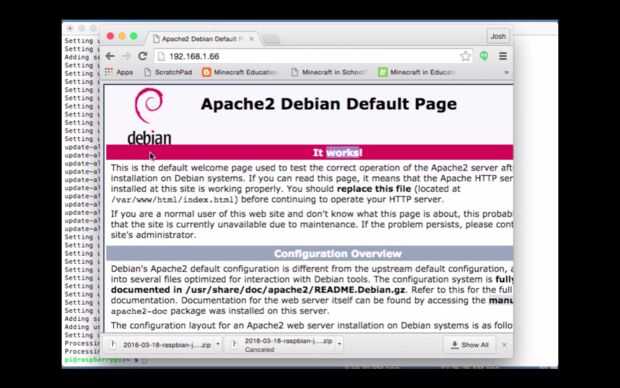 - Escriba la dirección IP de su PI en un navegador web. Una carga de la página web que dice "¡ funciona!"
