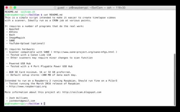 - Tipo: 5 0 *** /home/pi/SoilCam/soilcam.sh - v