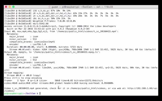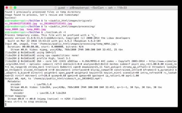 - ./soilcam.sh -t crea un video, pero no elimina las imágenes temporales