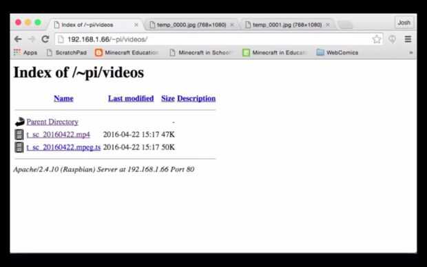 - Punto de un navegador web para http://your.ip.address/~pi/