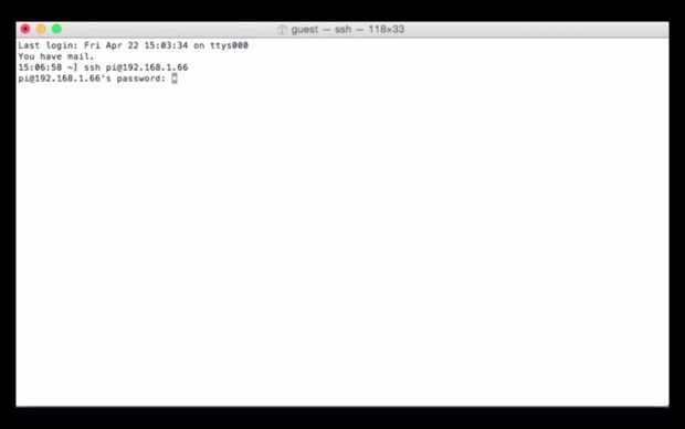 - Si todavía no lo has hecho, cerrar la sesión e inicie sesión en su Pi.