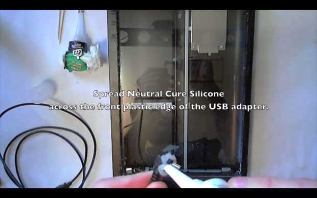 Aquí utilizamos dos tipos de silicona. La súper importante es la silicona de grado de acuario. Mucho la silicona que comprar tiene propiedades fungicidas (previsto para el uso en baños). No queremos acabar con hongos, así que vamos a evitar el uso de. Silicona "Curación Neutral", otro sabio conocido como "ácido no curado" sólo se usa en la base de la clavija USB que se conecta al escáner. "Ácida cura" silicona puede reaccionar con el metal del conector USB. Es una cantidad tan pequeña es difícil justificar el gasto de $10, y probablemente estará bien si se utiliza el grado de acuario para esto.