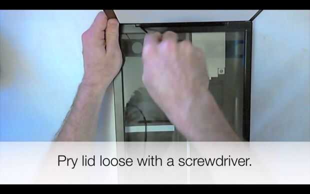 - Si es necesario, use la cabeza plana Destornillador para apalancar suavemente de la tapa.- Algunos exploradores no requieren curiosos, compruebe primero!