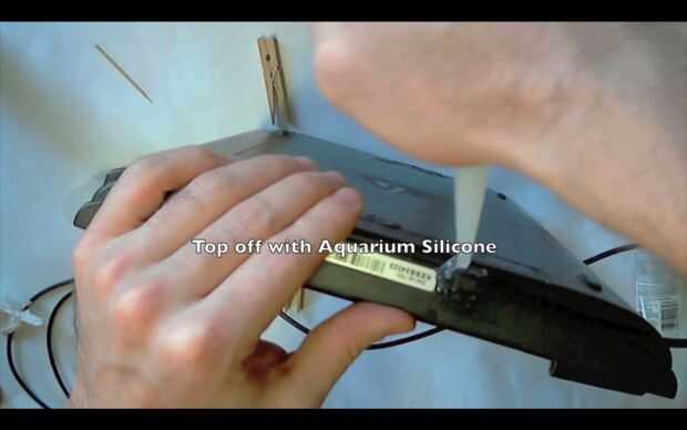- Selle todos los bordes de la parte delantera/parte posterior/lado con silicona de acuario- Utilizar la cuchara para ensuciarse en y liso hacia fuera silicón