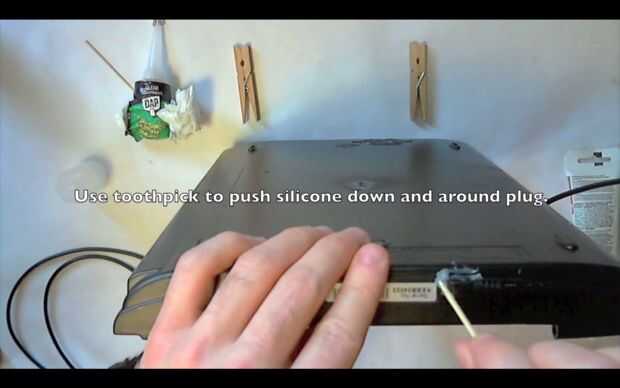 - Utilice un palillo para empujar silicona en y alrededor de la clavija