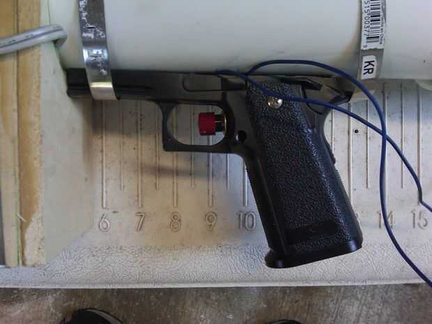 La primera parte es conseguir la corredera de la pistola. Esto puede hacerse normalmente quitando unos tornillos pero si todo falla mas una Dremel siempre funcionará. Una vez que el carro está apagado, usted quiere reforzar la parte delantera de la pistola pegando algo redondo dentro de la ranura para guardar las pinzas que utiliza para garantizar de romper el arma. Yo he usado tacos de madera, pernos o incluso el peso del metal que a veces viene en la pistola de airsoft para esto. Todo esto funcionó bien.