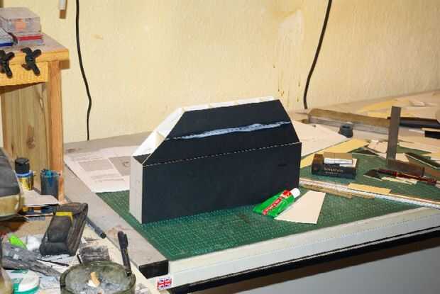 Una vez satisfecho que encajaría correctamente, agregaron a la parte inferior y los dos extremos, entonces la sección de lanzador de la Granada entera fue pegada a la caja del barril y durante la noche para que seque completamente.