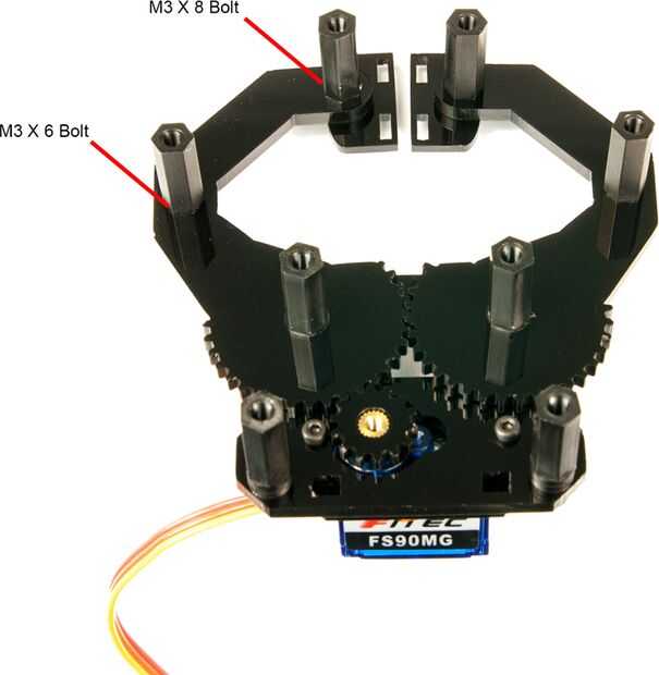 3. Instale una placa lateral de la yema del dedo en los agujeros superiores en cada uno de la izquierda y la derecha dedo Platesusing 2 M2 * 15 separadores y 2 M2 * 8 tornillos