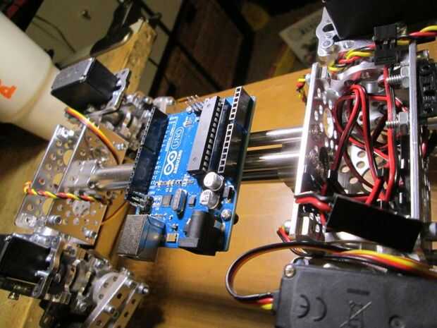 bueno cada unoSi tenes un arduino mini y dos servos estándar que usted puede hacer un poco robo a pie en dos 4 patas del animal doméstico.pero en el proyecto no utiliza un arduino original. He utilizado un microcontrolador ATmega8 con cargador de arr