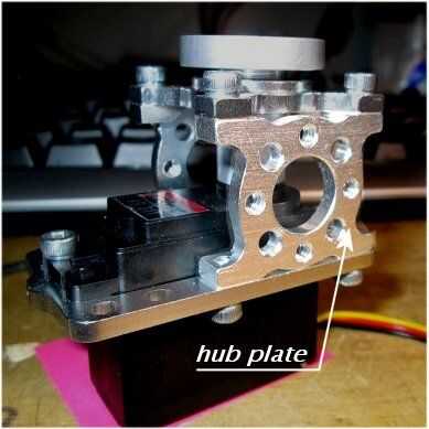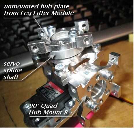 Fije una de las sin montar Placas eje de uno de los Módulos de elevador de pierna en el eje de la tira de servo.