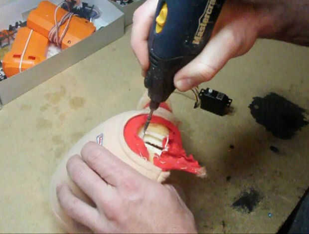 Tenga cuidado, pedacitos de plástico volar por todas partes. Yo uso un poco de corte y una alta velocidad. Las moscas plástico, así que usar gafas.