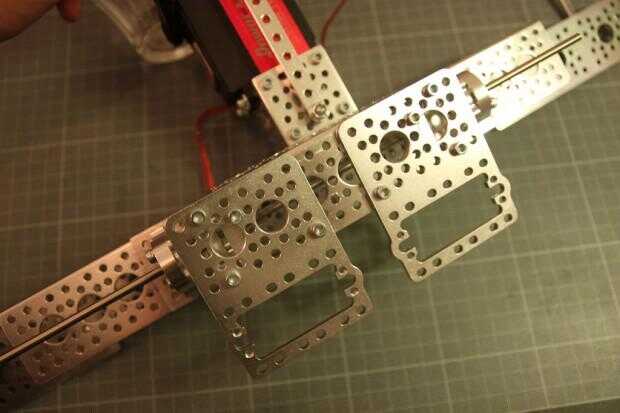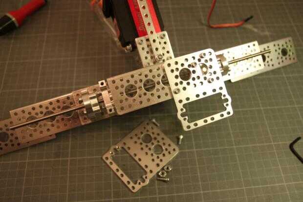 Y conecte la placa de servo a los soportes de eje que dejaste libre girar/traducir en el eje largo del canal principal de 12":