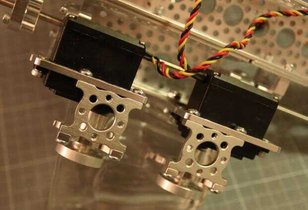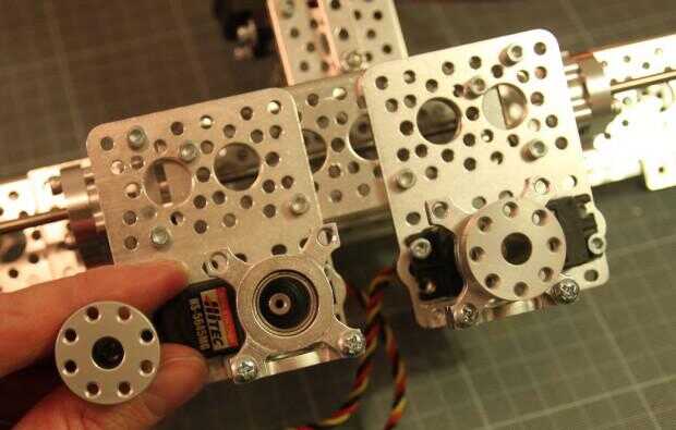Los ejes del servo se unen a la spline rotación del servo. Los brazos del robot se unirá a estos centros.