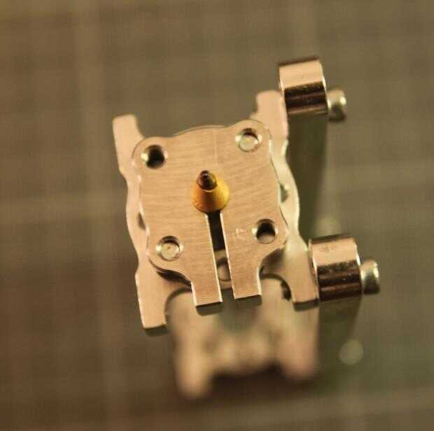 Construir un robot de 1/20 pulgada cúbica con una pinza que puede recoger y mover pequeños objetos. Es controlado por un microcontrolador Picaxe. En este momento, creo que esto puede ser más pequeño robot con ruedas del mundo con una pinza. Cambiará