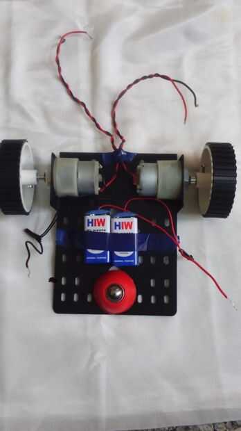 2 º paso: Lugar la batería usando una cinta n proporcionar la conexión al puente H utilizando un motor de 3v utiliza 3 pilas AA motors.if y colocarlos en un soporte de la batería.
