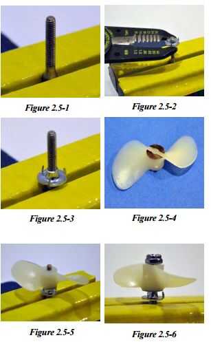 el acoplador de eje y en la punta del eje del motor, como en la figura 2.6‐1. Empuje el extremo hueco del acoplador de eje en el eje del motor. Una hélice completa se muestra en la figura 2.6‐2.