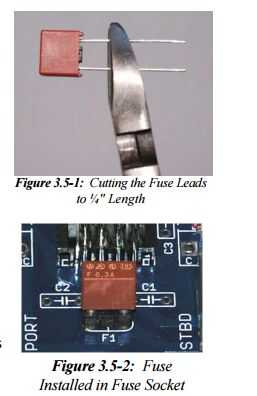 1) Localice el fusible. Si sus puntas son más que unos ¼"(6 mm), corte ambos conduce a que la longitud, como se muestra en la figura 3.5‐1