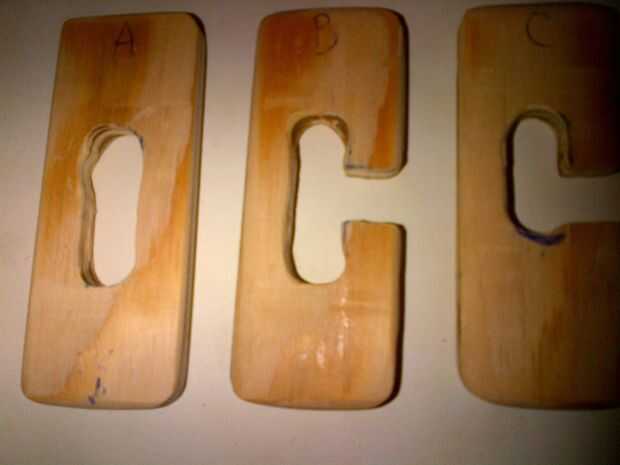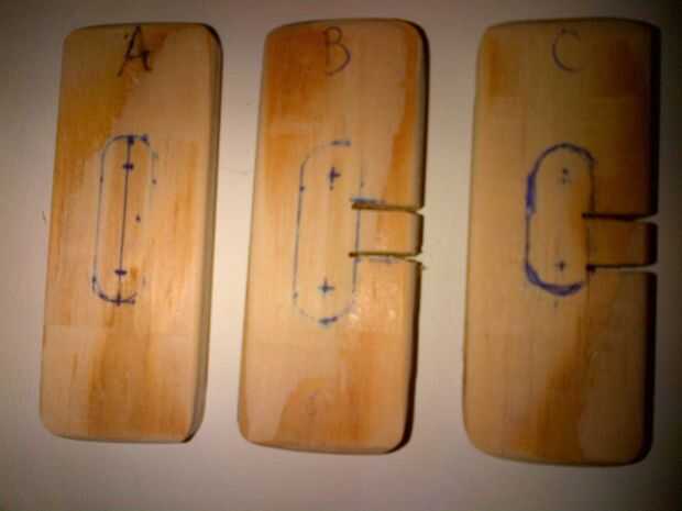 Usé la sierra a la limpieza de las aberturas en las dos piezas que tenían ranuras laterales y luego utilizan un pequeño archivo en los tres.