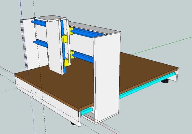 Antes de comenzar a construir una máquina, usted siempre debe hacer algún tipo de diseño. A veces sólo tiene que ser algunos bocetos en un papel, pero para esta máquina necesitaba un dibujo dimensional tres más precisa. Hice mi diseño usando google sketchup. Google sketchup es un programa cad gratuito, que puede descargar desde la web. Encontré que era muy fácil de trabajar, aunque nunca había trabajado con un programa de cad antes. No serás capaz de dibujar como diseños complicados como puede, mediante el uso de otros programas como Autocad, pero para mis propósitos trabajó muy bien.