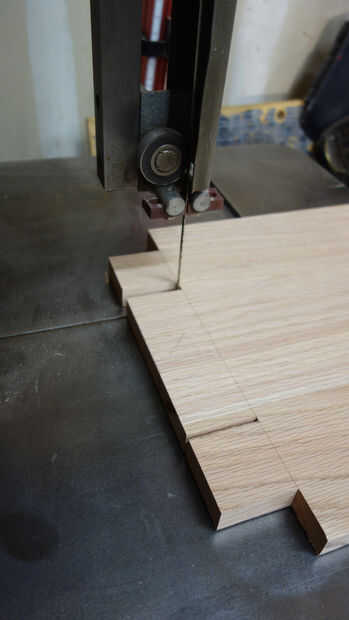 Esto es bastante sencillo y también se puede hacer con una sierra de mano. Dibujé el diseño de marcas en las juntas, aunque realmente sólo necesitábamos hacer un lado por cómo cortarlas.