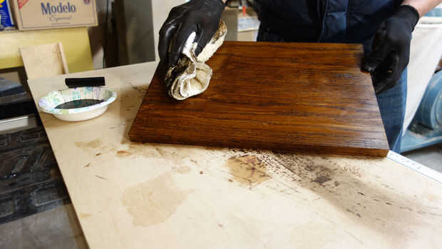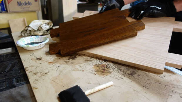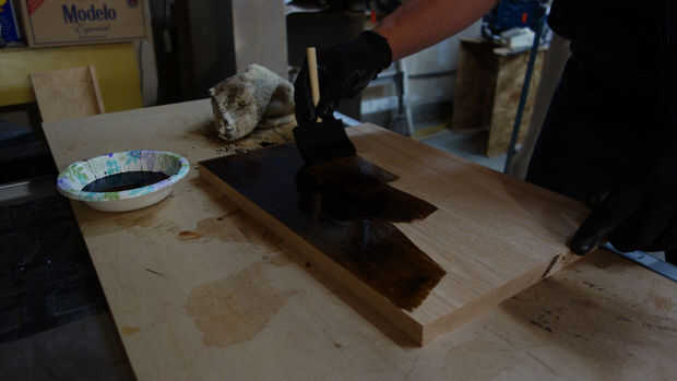 Salté por delante y había añadido algunos anilina tinte seca durante la noche. Mi racional pensaba que aceleraría el proyecto global como el trabajo restante y las articulaciones no verse así el típico proceso de acabado que requiere tiempos de secado largos podría ser acelerado.