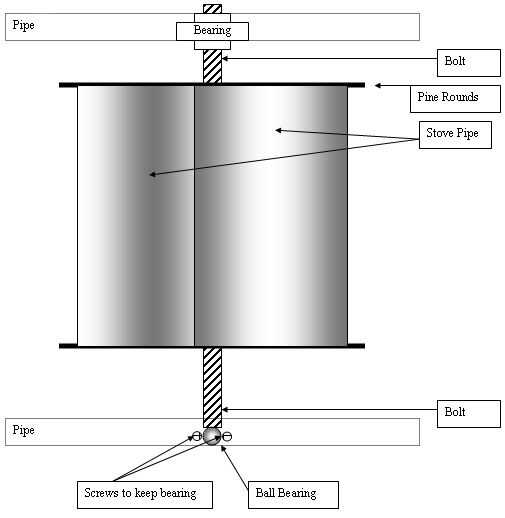 Se necesita un marco simple para sostener todo.  Usted también necesitará apoyar el rotor con algún tipo de rodamiento.  Ver mi diagrama a continuación para un arreglo temprano del prototipo que utilicé para experimentar.