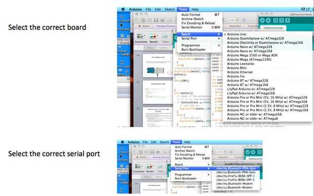 Seleccione la Junta correcta y el puerto correcto.