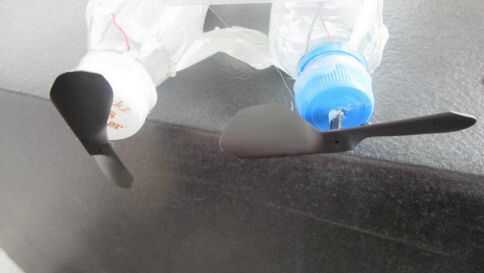 Pegamento en la hélice al eje del motor sobresale de la tapa.