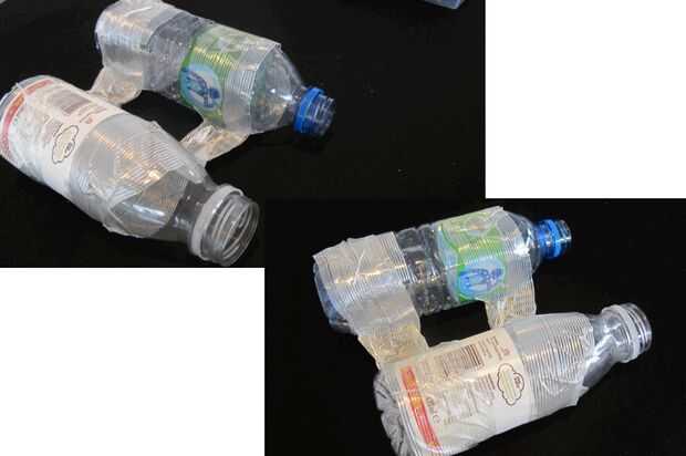 Tiras de uso dos o tres de cinta a cinta las botellas de agua, tipo de como una balsa.