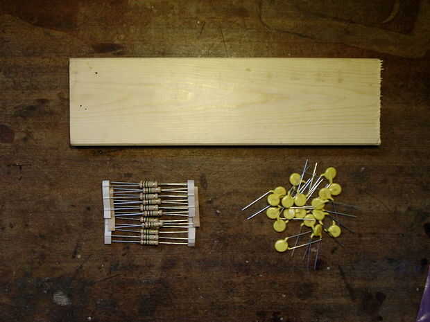 Los componentes recomendados que deben recibir son condensadores de cerámica y las resistencias de 1M de 1 vatio. Los condensadores de cerámica son ideales para este proyecto, ya que son baratos, fácilmente disponibles, y son buenos para circuitos de descarga de impulsos. Condensador polipropileno nominal de pulso también funcionaría bien, pero son más caros y más difícil de encontrar con alta tensión. Las resistencias deben ser de 1 M y 1 vatio tipo, normal 1/4 vatio resistencias son muy inadecuadas, si usa, hará un arco y las resistencias se queman y dañar el generador marx, use el metal 1 vatio esmaltado o resistencias de película de carbono es adecuado.