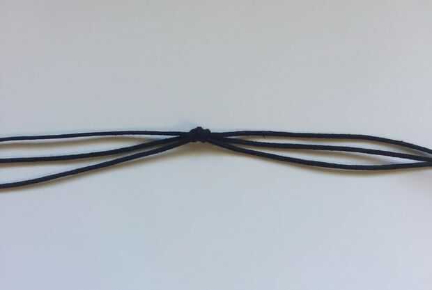 Corte tres piezas de cadena todos los tres pies de largo. Mientras se mantiene a todos a la vez, un nudo en el centro de las cuerdas.