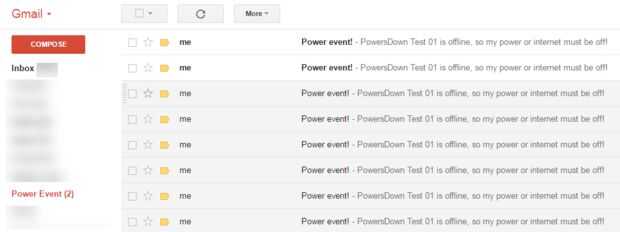 Así está sobre él. Si usted hizo esta lejos, Felicidades! Sobre la única cosa que puedo recomendar es que usted puede hacer un filtro en su bandeja de entrada para arreglar las notificaciones de correo electrónico de IFTTT. El inconveniente de este sistema simple es que también le notifica cuando el INTERNET se cae. Para algunos de ustedes, que no sea un problema, pero en mi zona que Internet pasará a 15-20 segundos a menudo varias veces al día, así que yo te haz bombardeado con notificaciones. Que vives en una zona con servicio de Internet más predecible, porque obtengo un montón de falsos positivos de vez en cuando.