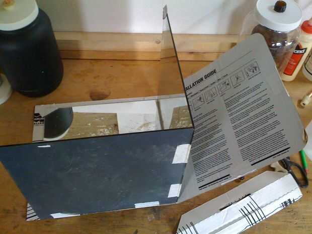 Aquí publiqué un rato sobre un simple solar todavía, y ahora estoy jugando con la adición de una parabólica como calentador. El 3 un espejo viejo ha tenido muchos puntos de vista (y corazones, gracias), y funciona bastante bien con un mínimo cuidado.