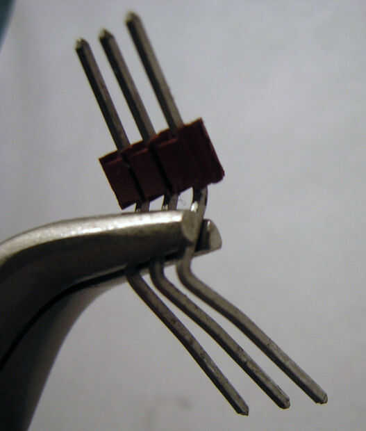 Lugar cada conjunto a ambos lados de la brecha de fuller/centro de tablero que se doblan hacia adentro hacia los demás. La parte superior de los pernos debe parecerse a una cabecera de 2 x 6 cuando se mira hacia abajo en él. No se preocupe demasiado por conseguir perfectamente alineados. Ellos van a estar bien una vez que están dentro de conector de 6 pines del programador ISP.