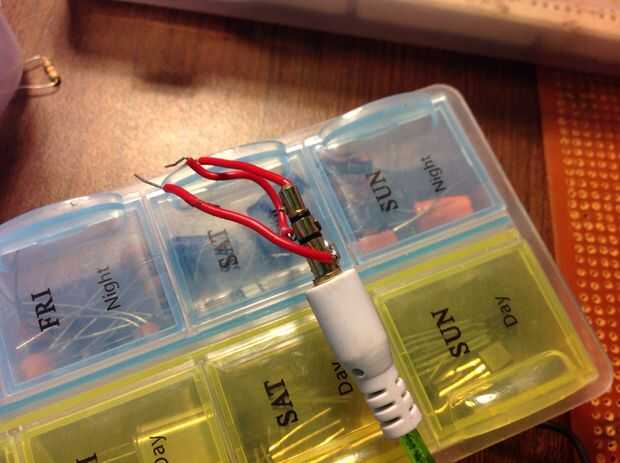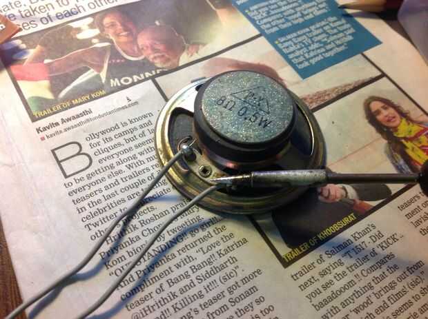 Soldar algunos cables de puente a cada uno de los contactos en el cable AUX, como se muestra en las imágenes. También soldar unos cables a los terminales del altavoz. Entonces usted puede proceder al siguiente paso...