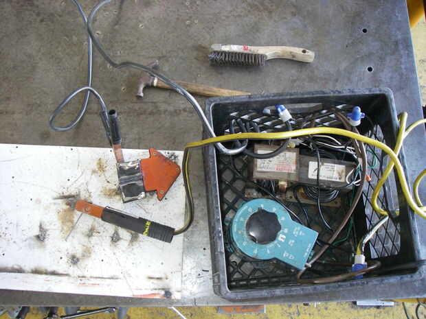 Eso me dio control muy fino sobre energía. Marc Lander y me hizo unas soldaduras muy bonito como se ve aquí. Después de unos pocos conseguimos buen amortiguador suficiente para hacer las soldaduras de la misma con 3/32" barras 6013 y no y no quemar agujeros.