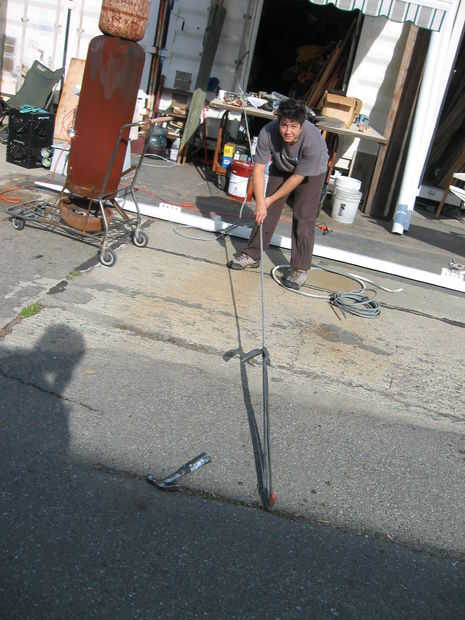 construido con materiales de bajo costos y fácilmente encontrados.Un soldador de arco bricolaje estándar (tipo transformador - pesado) produce cerca de 40 volts de corriente alterna.Que esta conectado a un puente rectificador para convertir a CC. Est