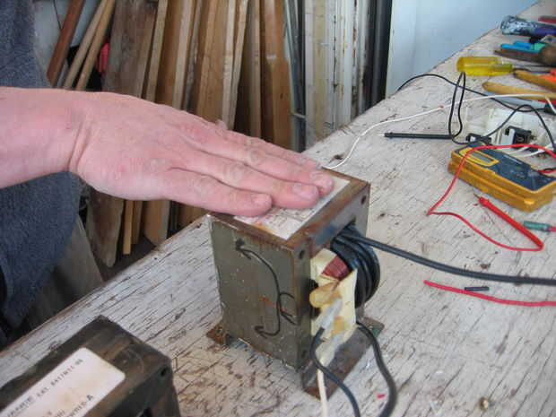 Donde Tim dice "fuera de fase" en el video, significa "en fase". Es decir, el golpecito de centro debe ser menos del exterior lleva dos, y si las cosas no fueron así, los transformadores estarían peleando entre sí, o por etapas mal.